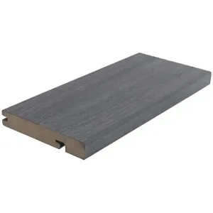 Durable and low-maintenance edge board for composite decking edges and stairs. Comes with a long warranty period and is made from 95% recycled materials. Create a clean and uniform look for your deck.