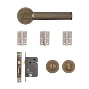 Complete Bathroom Hardware Solution: An all-inclusive kit with handles, a lock, a thumbturn, and hinges, ensuring a cohesive and professional finish for your bathroom door.