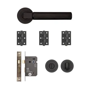 Complete Bathroom Hardware Solution: An all-inclusive kit with handles, a lock, a thumbturn, and hinges, ensuring a cohesive and professional finish for your bathroom door.