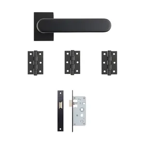 The Juno Urban Latch Kit in a modern matt black finish offers a complete and stylish hardware solution for your interior door. This kit includes a sleek handle set, a slim latch, and three durable black steel hinges.