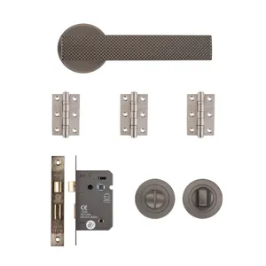 Complete Bathroom Hardware Solution: An all-inclusive kit with handles, a lock, a thumbturn, and hinges, ensuring a cohesive and professional finish for your bathroom door.
