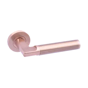 The Verona Handle now shines in a captivating rose gold finish throughout. Its circular rose and lever boast a uniform, polished rose gold tone appearance, adding a touch of elegance to any door. The handle's unique design seamlessly blends square and cylindrical shapes, creating a distinctive and sophisticated door accessory.