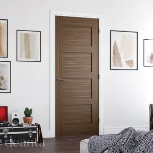 The minimalist style of this door is at once classic and contemporary; striking and understated; rustic and sleek. The solid door features four evenly sized panels of crown cut walnut veneer within a simple veneer surround.