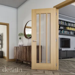 Norwich Unfinished Oak Bevelled Glazed - The appealing rusticity of the Norwich oak door is heavily accentuated by the natural grain patterns in its crown cut oak veneer. The clear bevelled glass allows for more natural light to enter the room, maintaining the rustic aspect of the door.