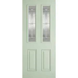 Malton 2L Glazed External Pre-Finished Light Green Front Face With White Inside Face and Edges Doors 838 x 1981