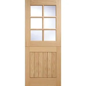 The Oak Cottage Stable Glazed 6L External Door is a charming and practical addition to any home. This versatile stable door design offers both full door and half-door opening options, providing flexibility and convenience. Featuring six clear double-glazed panels, this door allows ample natural light to fill your entryway. Crafted with a robust dowel construction, this door ensures strength and longevity.