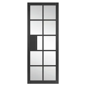 Plaza Black Clear Glass Internal Door is a stylish and modern choice for any interior. Its contemporary industrial design, combined with clear glass, adds a touch of sophistication and a minimalist aesthetic to your home.
