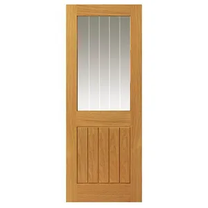 The Thames Oak Pre-finished Half Light Internal Door is a perfect blend of traditional and contemporary design. Its classic cottage style, combined with a clear glass panel featuring etched vertical lines and a solid oak grooved bottom panel, creates a stylish and functional look. The solid oak veneer and pre-finished design add a touch of luxury and convenience. Key Features: Classic Design: The cottage style design and solid oak veneer create a timeless and elegant look. Etched Glass Panel: The clear glass panel with etched vertical lines adds a modern touch and allows natural light to fill your space. Pre-Finished and Ready to Fit: The pre-finished door saves you time and effort, making it easy to install.