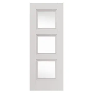 The Catton White Classic Clear Glazed Internal Door is a perfect blend of traditional and contemporary design. Its classic panelled style, combined with clear glass panels, creates a sophisticated and airy feel. Primed for a custom finish, it offers versatility and style.