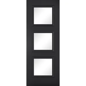 The Black Antwerp Glazed 3L Door is a unique and stylish internal door that adds a touch of sophistication to any traditional home. Featuring decorative bolection moulding and three clear glazed panels, this door allows natural light to flow freely throughout your home, creating a bright and airy atmosphere. The striking primed black finish provides a sleek and modern backdrop, allowing you to easily customize the door with your preferred paint color. The solid engineered core provides exceptional strength and durability, ensuring this door will remain a beautiful feature in your home for years to come.   Key Features: Natural Light: Three clear glazed panels allow natural light to flood any room.   Classic Design: Decorative bolection moulding creates a timeless and elegant look. Strong and Durable: Engineered core provides exceptional strength and longevity.   This internal door can be trimmed to fit various openings, offering flexibility during installation. It also comes with a 10-year manufacturer's conditional warranty, providing peace of mind for years to come.