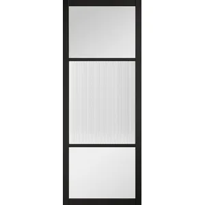 Featuring a cross reeded glazed center panel, the Sutton has a unique twist on an industrial style door. With a pre-finished black profile, this stylish internal door will add a contemporary feel to any home. Please note this internal door must be used with our Manhattan internal hardware.