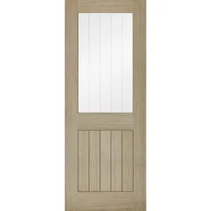 Perfect for modern homes, the pre-finished light grey internal Belize door features traditional looking square cut grooves in a popular five vertical panel design. The cool and contemporary pre-finished light grey colour will look amazing amongst your contemporary interior and with the added benefit of a large clear glazed with frosted lines panel replacing the top half or the door, it will be an internal door which is great for maximising natural light in your home. This door is fully finished and ready to hang.