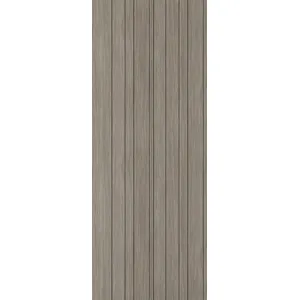This contemporary internal door features a unique design with small, vertical V-cut grooves, adding a touch of visual interest. Finished in a stylish Light Grey laminate, this door is ready to hang and provides a durable and easy-to-maintain option for any home.