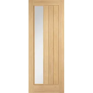 The Oak Belize Clear Glazed Offset Internal Door is a stylish and contemporary choice for any interior space. This door features a unique offset clear glazed panel within a beautifully finished oak frame, creating a visually appealing and modern aesthetic. The glazed panel allows natural light to flood into any room, creating a brighter and more open feel. Key Features: Stylish Design: The unique offset clear glazed panel and raised moldings create a sophisticated and modern look that complements a variety of interior styles. Enhanced Natural Light: The offset clear glazed panel allows for maximum light transmission, creating a brighter and more open feel within the room.   Customization Options: The unfinished oak allows for complete customization with your preferred paint or varnish.   The Oak Belize Clear Glazed Offset Internal Door is a stylish and practical choice for homeowners seeking a contemporary interior door that combines modern design with enhanced natural light.