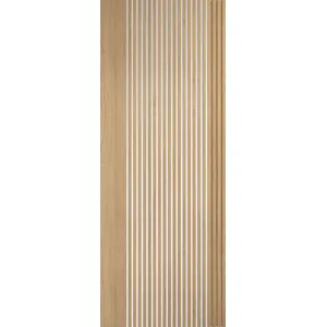 This striking internal door features a modern design with deep grooves created using clear glazing and a pre-finished oak wood veneer. Perfect for larger spaces, the clear glazed panels allow natural light to flow freely.   Key Features: Pre-finished: This door is supplied fully finished, saving you time and effort during installation.   Modern Design: The unique groove detail and clear glazing create a contemporary and stylish aesthetic.   Versatile: Can be trimmed to suit your specific installation needs, offering flexibility and ease of fitting.