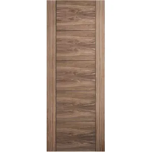 The Walnut Vancouver 5P Internal Door is a contemporary and visually appealing choice for any interior space. This door showcases a unique design with light wood inlays forming ladder-style panels within a beautifully finished walnut frame.
