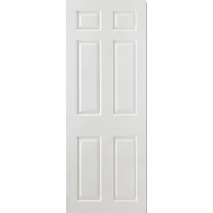 Suitable for any room, this classic door design features four raised panels in a rectangular shape and two in a square shape.