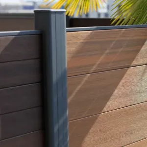 Aluminium 4-way slotted posts for Ultrashield composite fencing. Comes with 1 cap, 1 insert, and 2 anchor clips. Durable and visually appealing. 15-year in-concrete warranty.