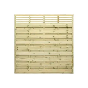 The Elite Lille Fence Panel offers a clean, contemporary look with smooth, straight-cut horizontal slats and a stylish trellis top. Built with mortise and tenon joints and pressure-treated for durability, it provides a modern and long-lasting boundary solution.