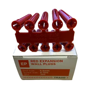 Olympic Plastic Expansion Wall Plugs - Red (For 6mm to 10mm Screws) x 100