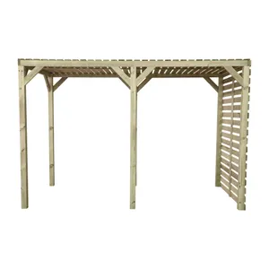 This modern pergola is a perfect addition to any outdoor space, designed for dining and entertaining. Its standout feature is the back screen, which not only provides an ideal spot for hanging plants but also acts as an effective windshield, making your outdoor gatherings more comfortable.